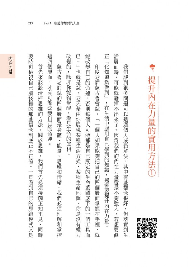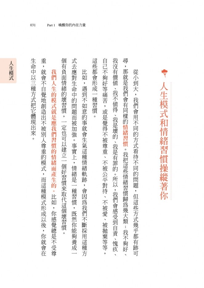 這本書其實也是我的作品《遇見未知的自己》(喚醒)、《活出全新的自己》(療癒)、《遇見心想事成的自己》(創造)的進階版本——在原有的基礎上,更深入地探討不同主題,從不同的角度再次抽絲剝繭地探討人性、意識,以及我們的情感、思想,甚至能量上的各個層面,來看看我們究竟怎麼樣才能擁有更好的人生。因為當初是口述,所以文字大多淺顯易懂、直白清晰,而且故事、軼事、案例比較多,是一本比較好讀又有實作性的個人成長書。