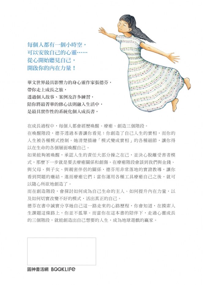 德芬在書中誠實分享她自己這一路走來的心路歷程,你會知道,在摸索人生課題這條路上,你並不孤單。而當你在這本書的陪伴下,走過心靈成長的三個階段,就能創造出自己想要的人生,成為地球遊戲的贏家。