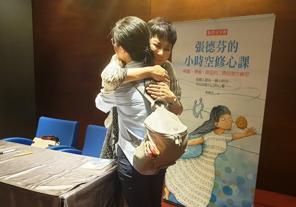 *張德芬在新書分享會現場,贈送提問讀者的獎品《遇見心想事成的自己》。在圓神書活網訂購本書,目前限時享有現折100元優惠。