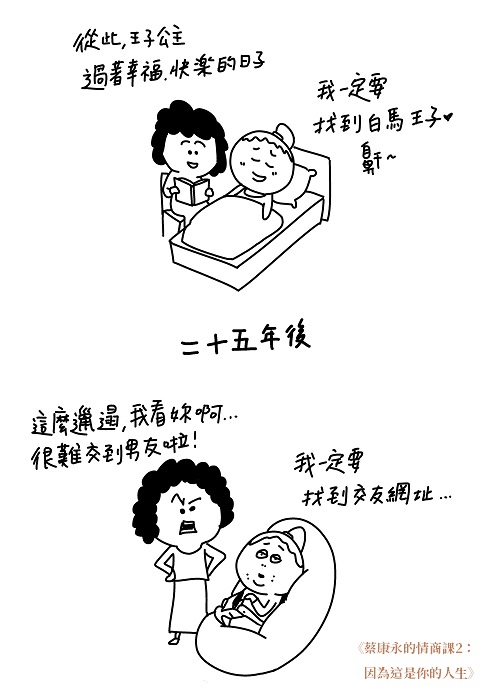 自以為是公主的女生,當然會一路受到真實世界的教訓,漸漸明白了童話裡捏造的「公主跟王子,從此過著永遠幸福的生活」,在技術上根本做不到,在邏輯上根本不成立。