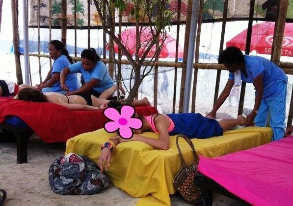 (重度按摩成癮者的小編即便在沙灘上都不放過按摩機會)