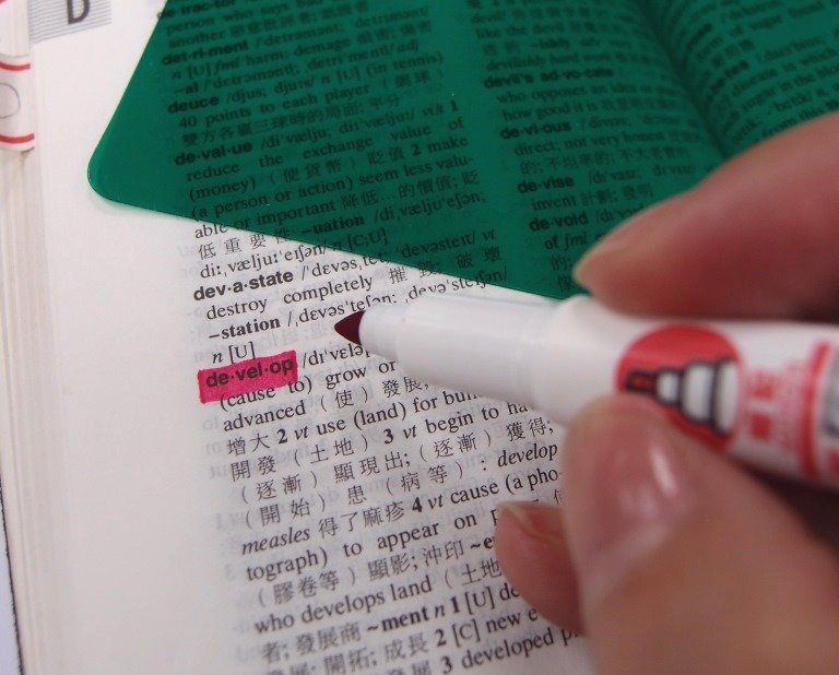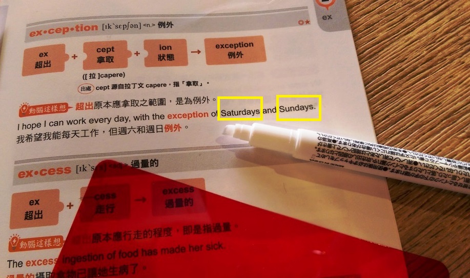 舉英文學習來說,首先,先將想要記憶的單字塗上紅色。