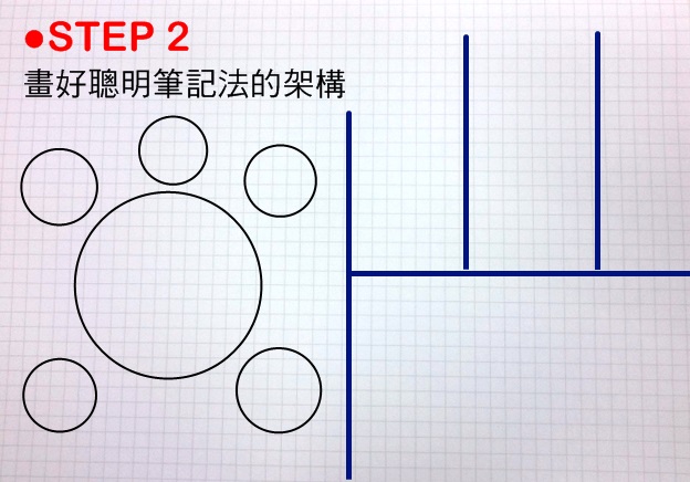 只是沿著橫軸與縱軸的輔助線畫出方格,就變成具有聰明筆記法(架構)的筆記本。