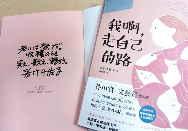 作者若竹千佐子以有力不羈的筆跡,寫給台灣讀者的題詞扉頁是:「老,是慶典。收穫之時,請歡笑吧,謳歌吧,談論吧。」樹木希林也曾表達,活是日常,死是日常。活著死去,都要有趣!