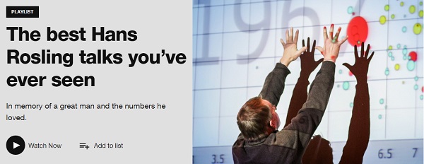 你可能不記得這個瑞典名字,但是看到漢斯的笑容就想起來了。這位公共衛生學者,曾親身到前線參與2014年伊波拉病毒,並堅持以數據化解恐懼:為了研究古巴罕見的傳染病,並親訪過卡斯楚。他不僅是《時代》雜誌評選全球最具影響力的百大人物,是TED影片點閱率最高的講者之一,他所屬的「國際防止核戰爭醫生組織」,獲頒1985年諾貝爾和平獎。