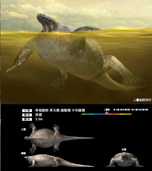 古生代末期的水底世界,引螈在生態系中屬於「支配者」。當時在內陸擴張「勢力」的單孔類大型肉食動物,應該也會互相競爭看誰是生態系最頂層吧。