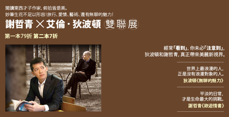 當東西方才子作家謝哲青和艾倫.狄波頓的文字交會,將產出什麼樣的共鳴呢?