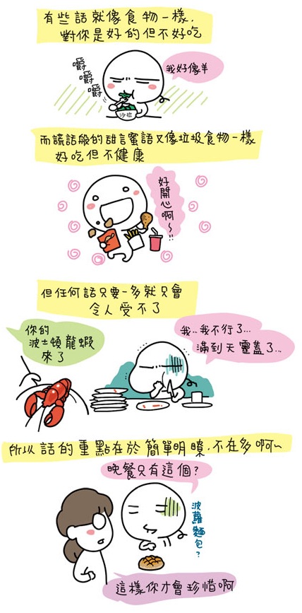 這就是為什麼我們雖然是自私的人類,但我們完全可以和別人好好相處在一個世界。這應該也就是為什麼你會翻開這本書的原因:因為你比幼童時成熟多了,你知道說話就是為了和別人好好相處,而和別人好好相處,你才會過得好。
