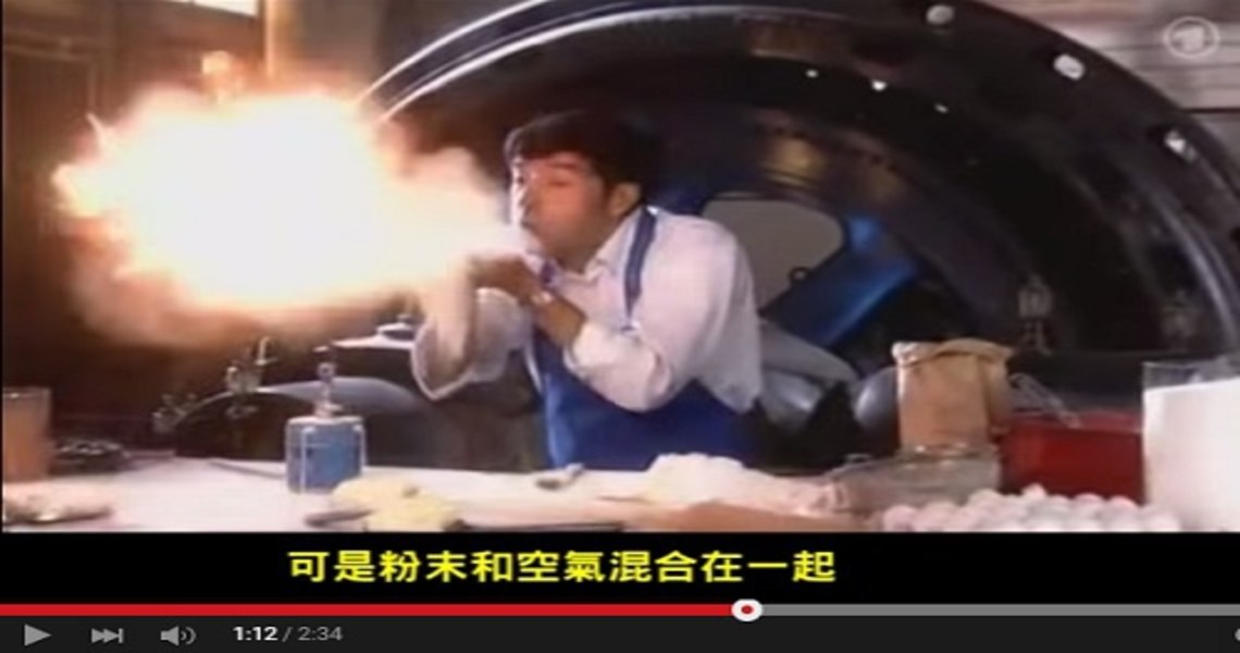 知識就是力量。麵粉碰到火源,並不代表就會這樣燃燒起來,但當粉末與空氣混合,就產生了爆炸的能力。不只是麵粉,甚至木屑、可可粉、砂糖都有這樣的機會。這是因為愈細的粉塵表面積與空氣的接觸面變大,更容易發生作用。