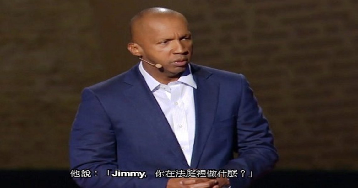 他的TED演說是說故事的絕佳範例,因為他說的每個故事都和「認同」的主軸有關。最後一個故事的主角是他某次出庭時遇到的清潔工,當時史帝文森和法官正在法庭上展開激烈的辯論。