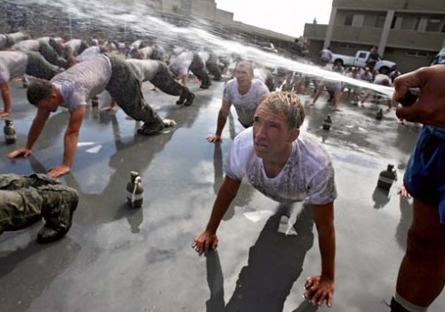 我在儲備軍官學校快結業時,海豹指揮官在辦公室召見我。身高一百八十八公分、格外健壯的他坐在桌緣注視看我,整整十分鐘不吭一聲,以海豹隊員著名的「千里注視」磨練我。突然,他開口打破沉默。