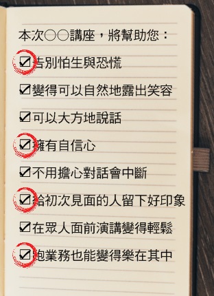 例如,如果是「因為不擅長跑業務或簡報而正苦惱著」的人,應該對於「跑業務或簡報也能變得樂在其中」有所反應吧。若是能夠引起讀者反應的項目越多,越容易讓讀者興起購買商品的想法。