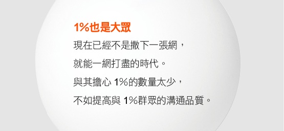 這裡所說的1%行銷,意謂著該著重的不是數量,而是與行銷對象的溝通品質。