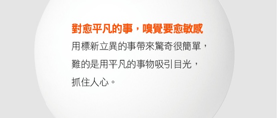 要知道,創意只會從內在誕生,舉凡自己看過的、讀過的、聽過的、體驗過的、思考過的⋯⋯創意將從中誕生。這種時候,愈能從內在挖掘出愈多性質相異的資訊,愈能將這些資訊巧妙組合起來,創造新的價值。能否做到這點,將考驗來自豐富知識與經驗培育出的品味。從所見、所聞、所體驗的事物中培養品味,再另外加碼投資自己,以提高對事物的感受性,這一切都與創意有密不可分的關係。