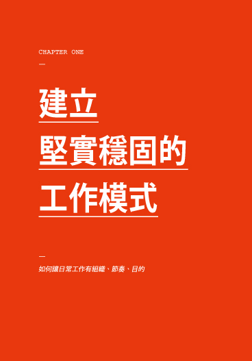 所以,與其列出一體適用的生產力系統,我們提供的是能產生偉大作品的最佳戰術練習本,希望這些集合起來的新觀點,可以幫助你改變思考模式、重新調整工作流程,讓更多絕妙點子付諸實行。