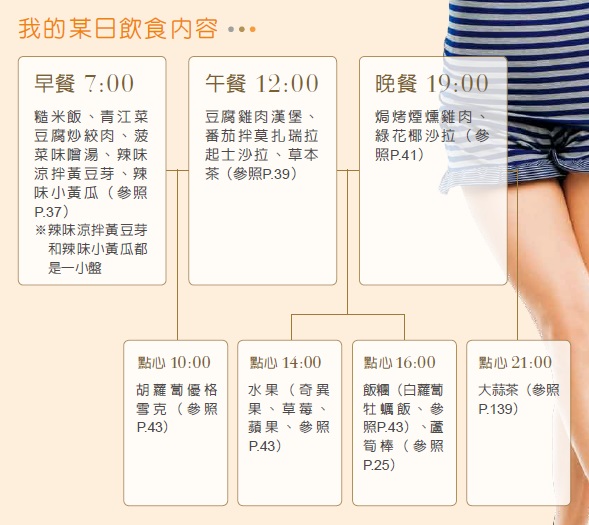 計畫3減少糖分攝取,女皇建議的一日菜單範例(各式食譜,在女皇的書中都有詳盡介紹)