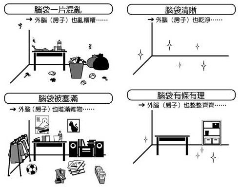 外腦理論:房子=大腦,房子越乾淨的人,腦袋也越清明,做任何事都易成功。相反的,房子雜亂的人,腦袋通常也混亂不明,遇事慌亂,不知如何處理。