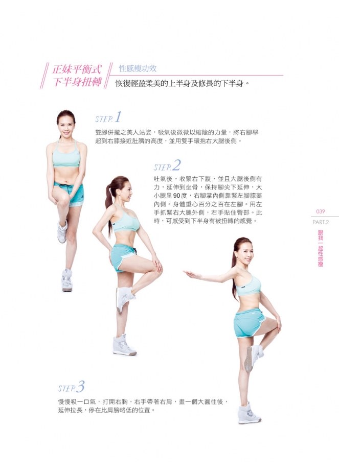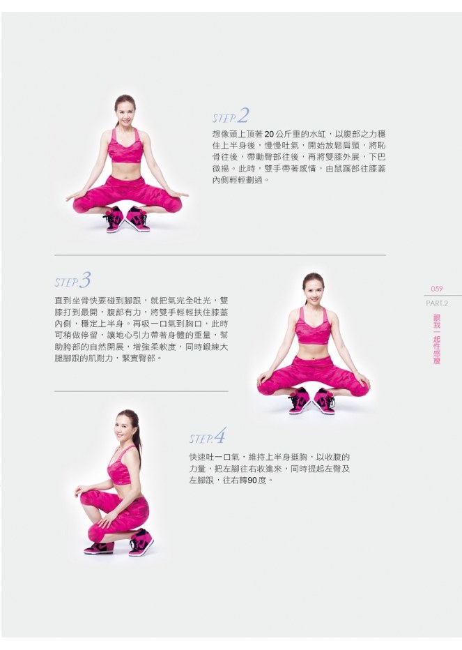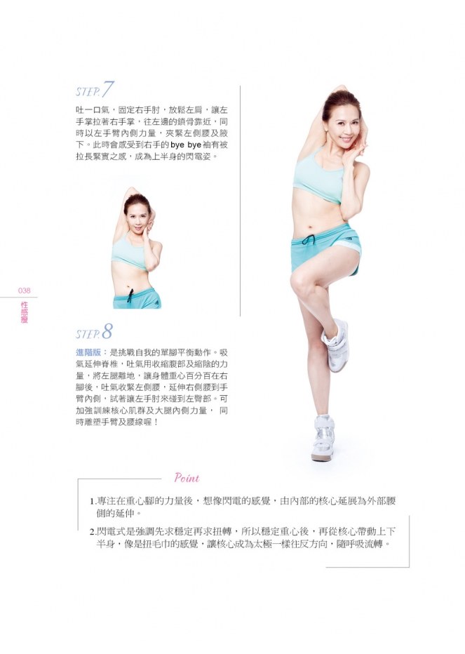 根據《性感瘦(1書+1DVD)》示範的動作學習,從上半身的性感頸線、完美肩線到3D美胸、嫵媚纖腰、3D+雙外C馬甲線,到下半身的翹臀蜜桃線(臀部扁塌者的救星),有效緊實大腿內側的鬆垮肉,消除大腿外側的馬鞍肉,讓你練出性感後腰窩、雕出修長美腿,還能釋放雙腳壓力,消除下半身的沉重感!