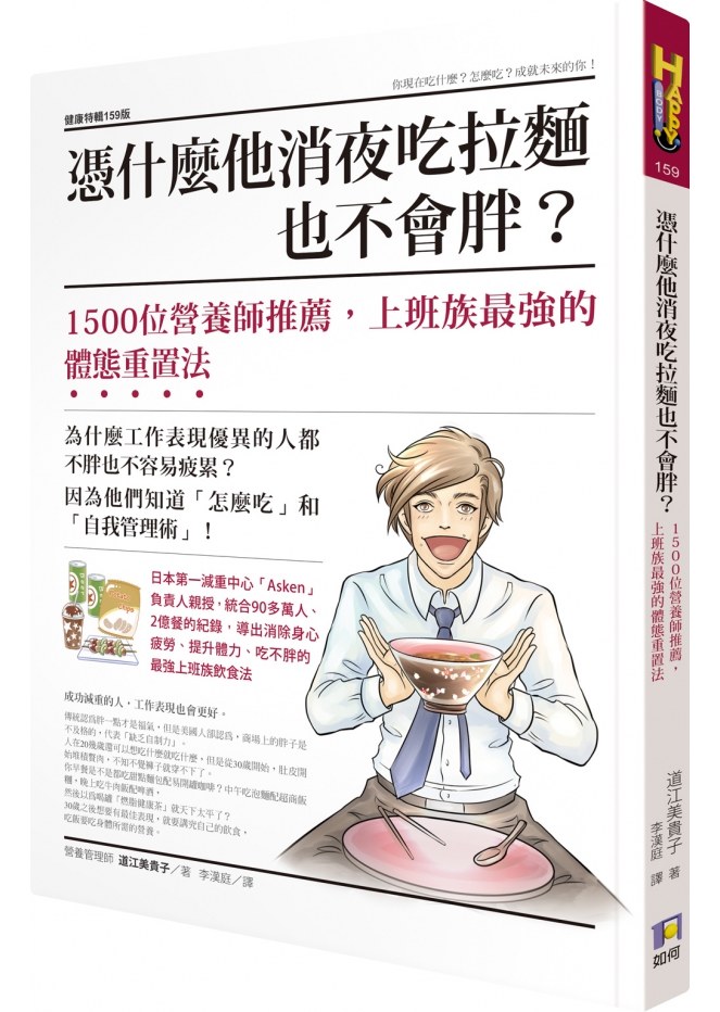 為上班族打造過兩億餐飲食資料的道江美貴子,大膽提出《憑什麼他消夜吃拉麵也不會胖?》的體態重置法。