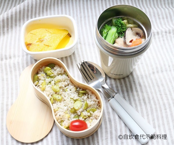 (【自炊食代】極光媽媽早就仰慕土井善晴,立刻為愛女進行一湯一菜的便當。)