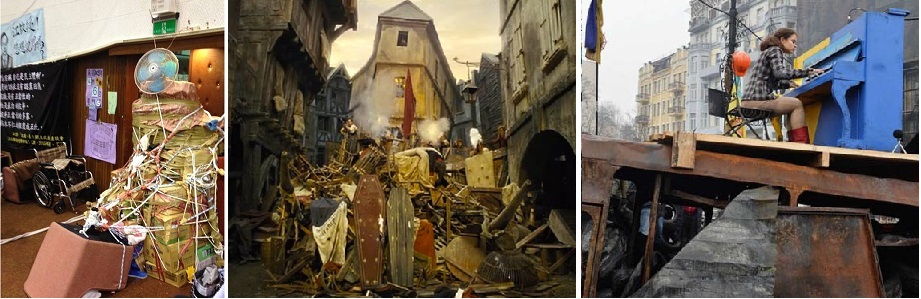 ◎由家具、廢棄物等雜物所形成「街壘」,是法國大革命時代的產物,堆積在街道或建築間,在實質和意義上用以阻擋國家公權力。在《時空亂鬥》中,安克.摩波市的居民紛紛架起街壘,隔離宮殿和市中心。
