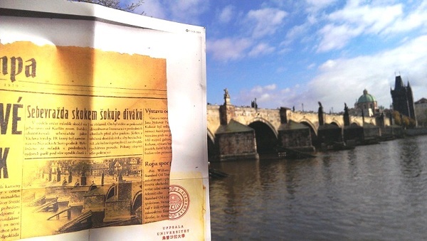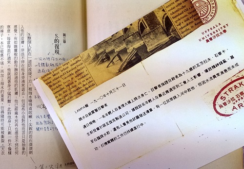 《希修斯之船》的兩名小偵探讀者珍與艾瑞克,從大學石察卡檔案室掉出這份社會新聞報導,夾在書中(配件6)--1910年10月30日,石察卡從查理大橋上跳水身亡。