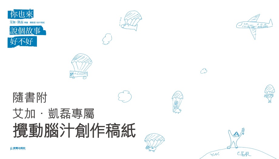 .隨書附艾加.凱磊專屬「你也來說個故事好不好」攪動腦汁創作稿紙(誰捨得寫在上面呢...)