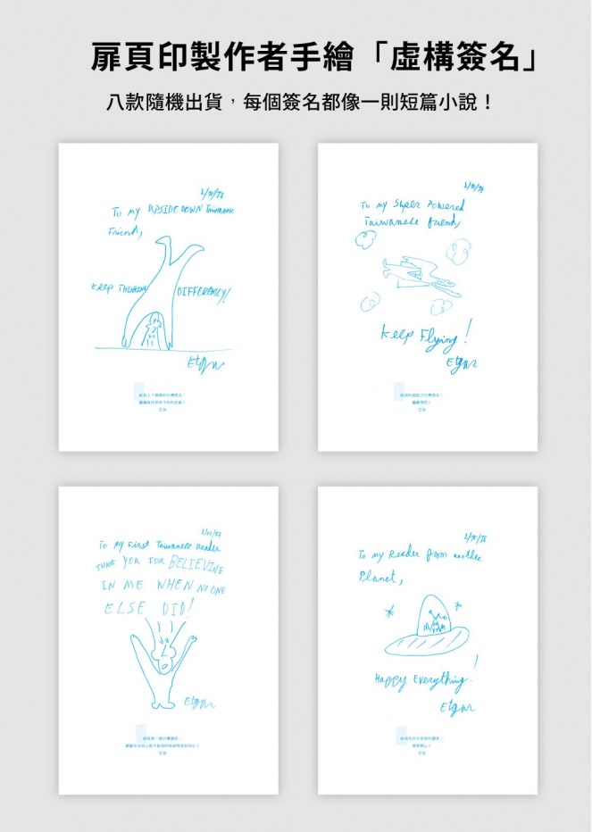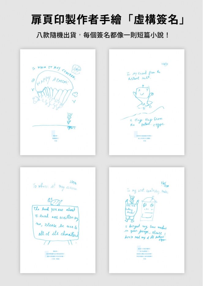 八款扉頁隨機出貨,每個簽名都像一則短篇小說!還可以跟朋友交換讀哦。
