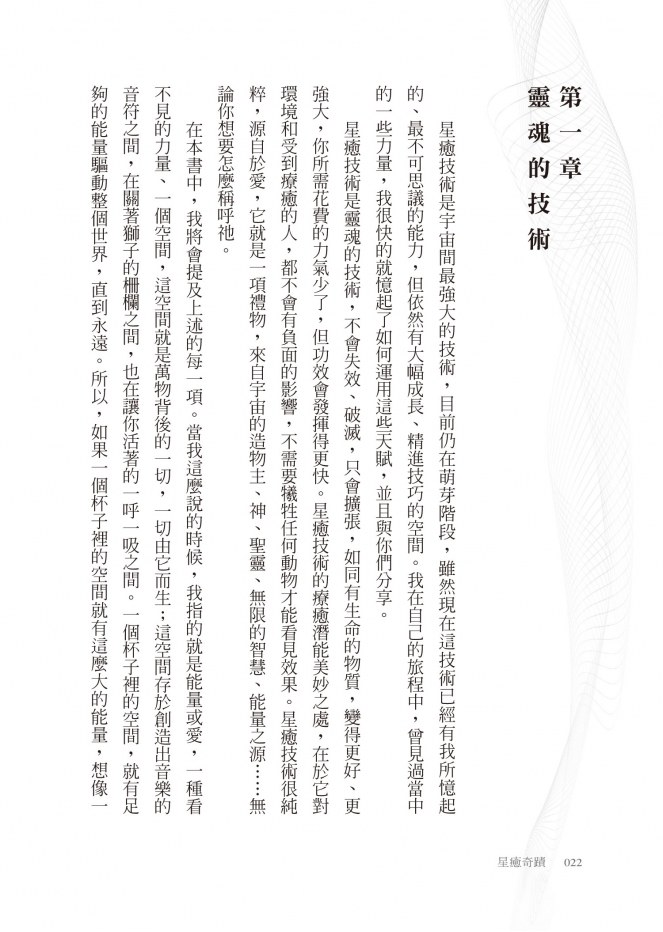 當這本書送達後,我就利用時間「姑且」看一看。第一章提到「星癒技術是宇宙間最強大的技術;星癒技術有五項關鍵的要素:愛、意念、想像、知曉、光」,覺得又是老套,一大堆心靈書都在談這些什麼愛呀光呀。很多認真的讀者不斷買心靈書來閱讀,卻又無所適從,生活品質與心靈並沒有提升。又有很多人不斷花錢上課,似乎也沒有獲得什麼進展,只聽一大堆雲端的、沒有地氣的空無。