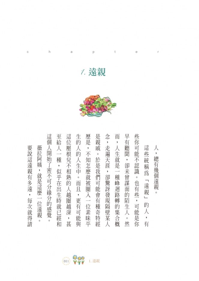 但有時隔了一兩年再見,總會在心裡認真回想:「啊,這位曾是我鄰座的那個誰……」拚命想也想不起來的狀況下,如果剛好又坐在鄰座,只好重頭再來一次自我介紹,不過也剛好可以填滿彼此陌生不相熟,找不到話題的尷尬。這有著奇妙賓客組合的薇拉阿姨生日宴會,每年就這樣重複一次。