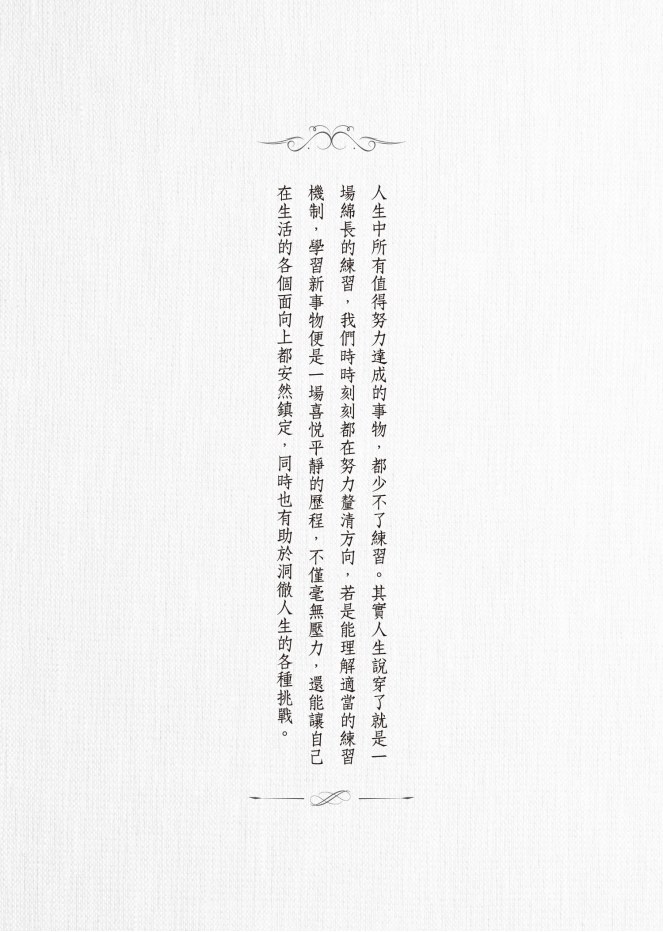 人生說穿了就是一場綿長的練習,構成日子的其實正是不斷調整身心方向的努力歷程。