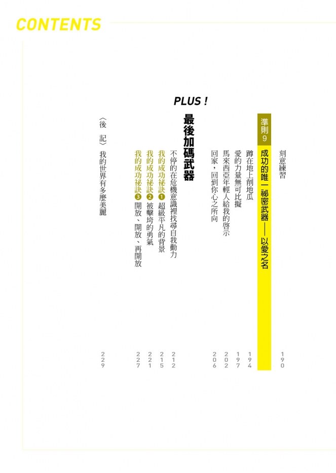 如果你碰巧跟當年的我一樣,認為自己一點籌碼與選擇也沒有,那很好,你可以學後來的我,把自己塑造成籌碼,一個非常有利的籌碼,去翻轉自己的弱勢。如果什麼都沒有的我都可以做到,我相信你們在學習並消化這些自我晉級的故事與方式之後,也能跟我一樣,在追求人生或職涯理想目標的路上,能有不錯的成績。