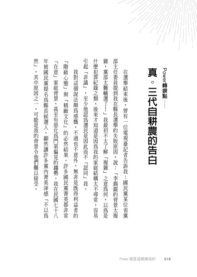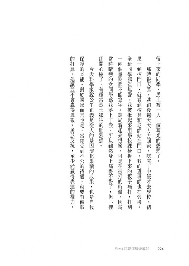 本書以此次挫敗為起點,回顧他生命中的關鍵時刻。他深深醒悟,力量絕非憑空得來,人生如果沒有強度,怎麼會有力量?正視失敗、超越痛苦,才能讓自己真正的強大起來。