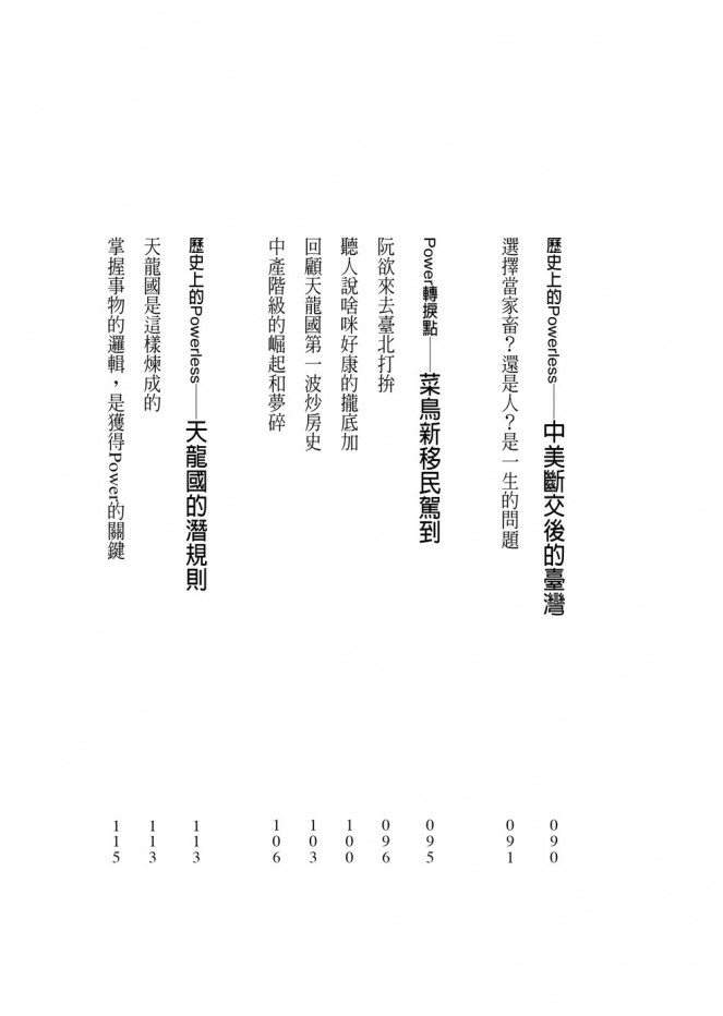 當時全臺北縣到處是謠言、耳語,沒有證據指出誰在散播,殺傷力的程度也很難評估。不過現在回頭來看,我的失敗不但是一項選舉結果,更可以說是某種時代潮流的轉捩點,應該有深入探討的價值。 柏拉圖有句名言:「放棄參與政治的人,必須接受讓壞人統治的懲罰。」大部分人並不會把政治科學當作個人專業,但是不管從事任何專業,人都要有政治的常識,因為終其一生,每個人都必須生活在人群之中,所有的地位、尊敬、愛戴,都是他人給你的。