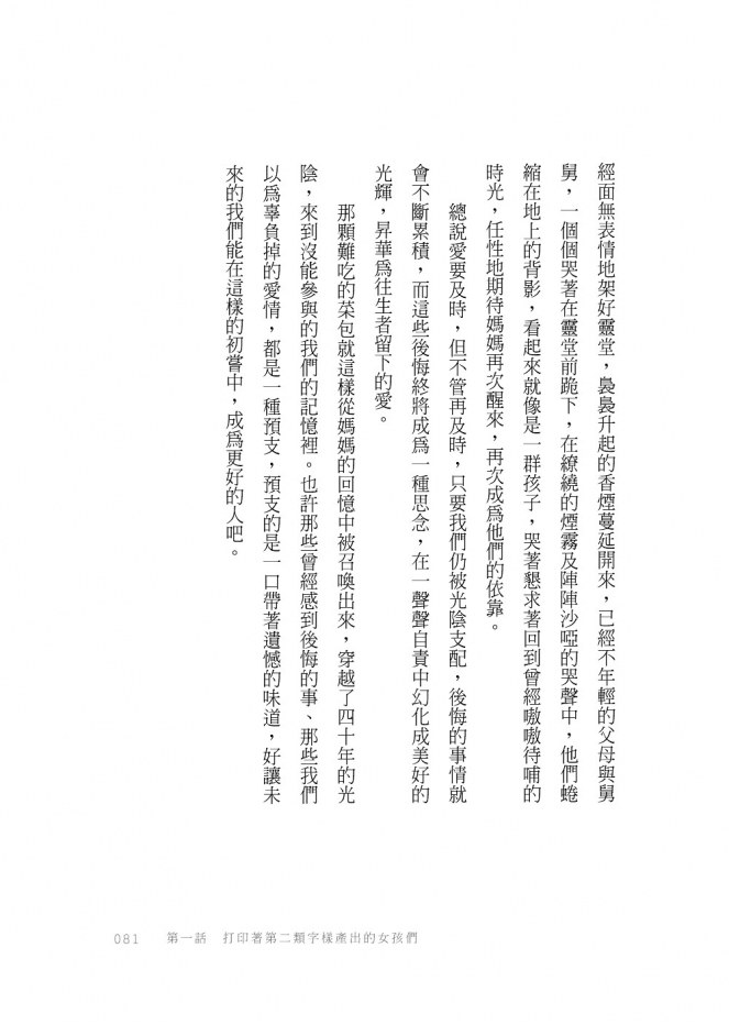 於是,她以極富畫面感的文字,記錄下這些奮力摸索著成長,最終綻放獨特光芒的軌跡,讓我們知道自己不孤單。也提醒著,或許我們無法什麼都要,但千萬不要連自己都丟掉。就讓那些來不及的事,讓我們成為更好的人吧!