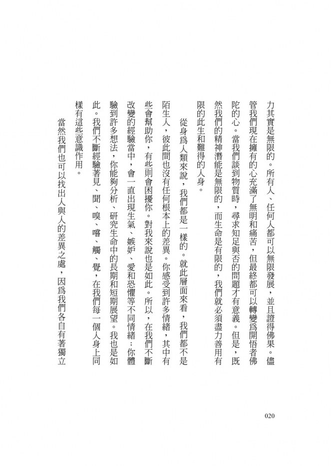 ★生氣與仇恨會破壞我們內心的平靜。慈悲、寬恕、手足情誼、知足和自律則是我們外在與內在平靜的基礎。唯有強化這些內在特質,才可能擁有真正而持久的平靜。這是我所謂的內在成長,我有時也會說成內在裁軍。事實上,在這個社會的所有面向中,從家庭、社會到政治,內在裁軍正是現在人們最需要的。