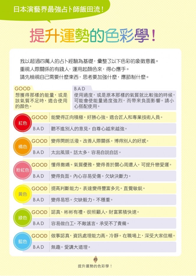 演藝界最強占卜師飯田流!提升運勢色彩學!