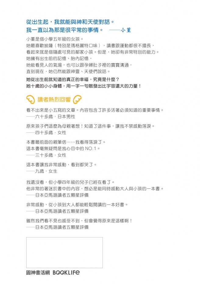 ◆一個擁有出生前記憶的小學五年級學生,用心傳遞「神想告訴世人的事」:什麼是真正的幸福!