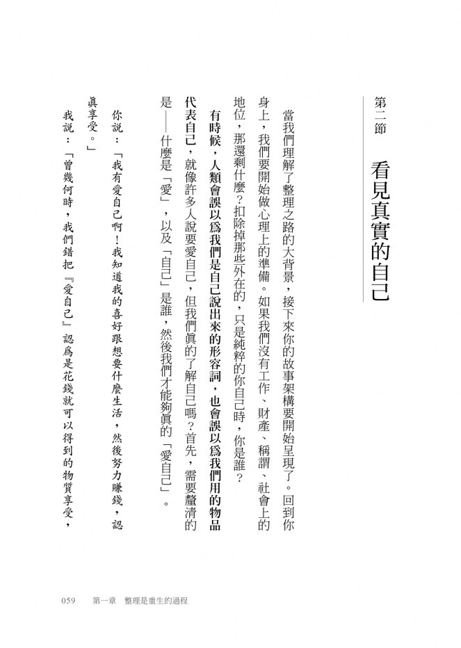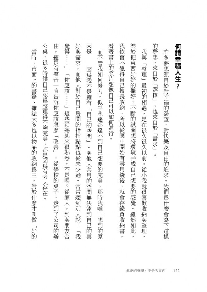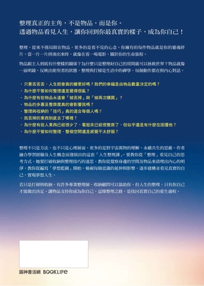 若只是打掃與收納,有許多專業整理師、收納顧問可以協助你,但人生的整理,只有你自己才能做出決定。讓物品支持你成為你自己,這條整理之路,是找回真實自己的重生過程。