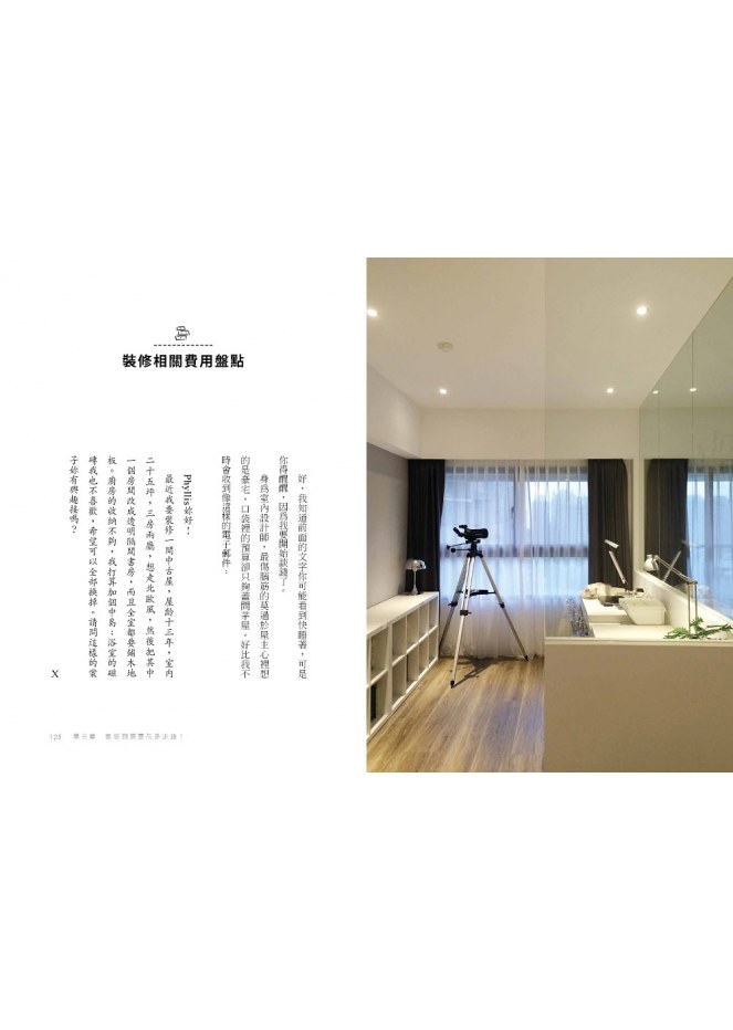 其實二○○七年就有出版社找我寫裝修書了,但我當時自覺經驗不夠、底氣不足而予以推辭。怎料因為清雜物清出了心得,二○一二年反倒先出了以整理為主題的《零雜物》,二○一五年又寫了深入探討囤積症的《囤積解密》,以致大家多半認為我是整理收納領域的人,沒注意到我有室內設計的背景。