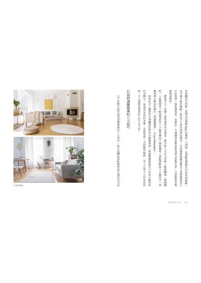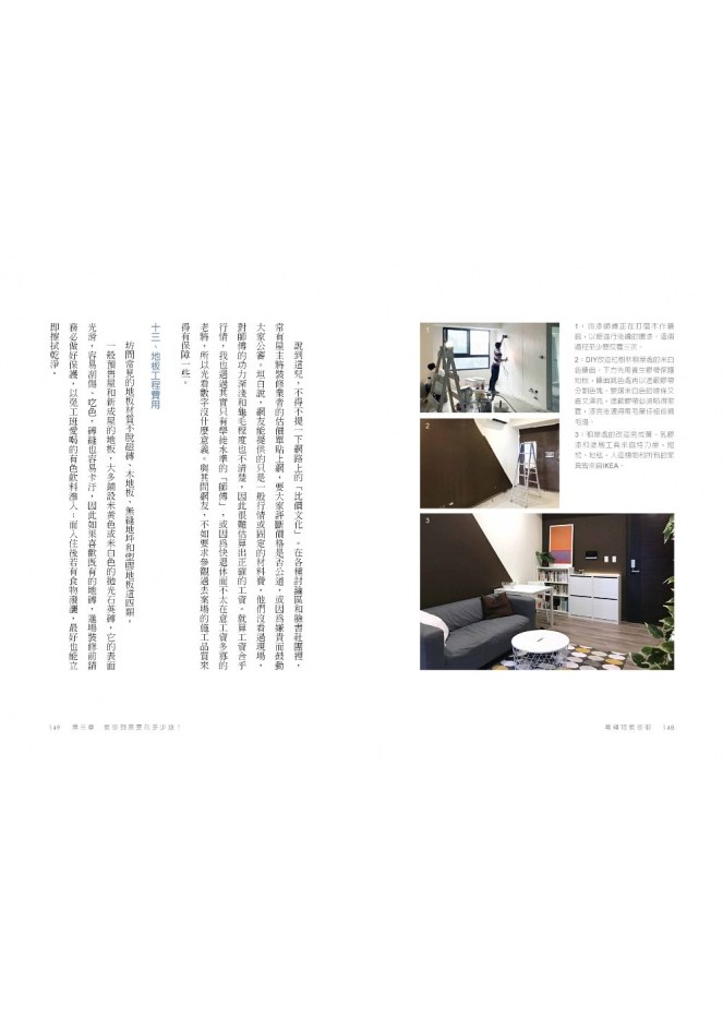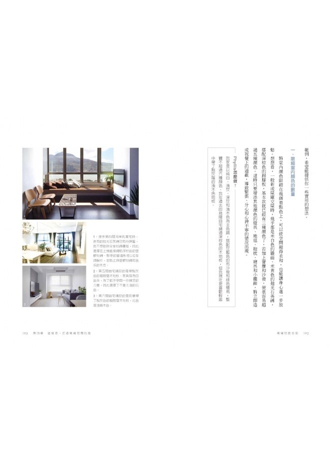 也因此,我寫了這本以「減法」為概念的書,內容不僅涵蓋如何規畫收納機能、如何刪除不必要的設計、如何認識並拿捏裝修預算、如何營造簡約舒適的風格,同時也告訴讀者如何使用一間房子,讓它得以久住不亂,維持初入住時最清爽的樣貌。此外,我也期待它能協助屋主釐清思緒,減少與室內設計師或裝修業者之間的溝通障礙。