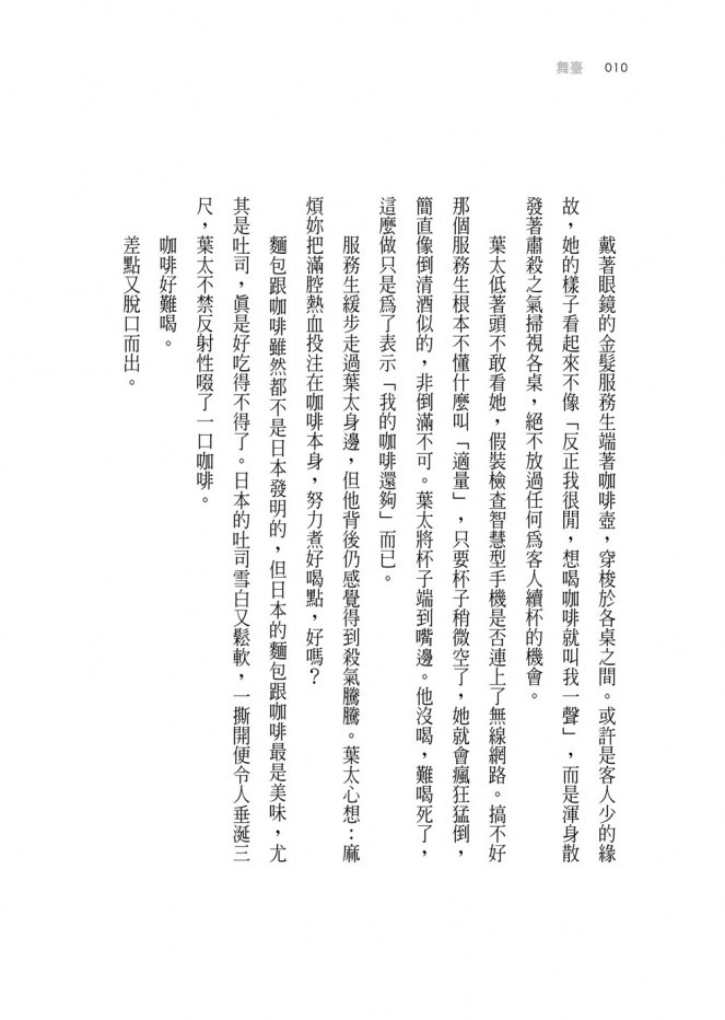 他知道還有世上很多不同的作品,也明白不喜歡的書大可略過,但為何父親──如此至親之人偏偏是作家呢?葉太憎恨自己的生長環境。