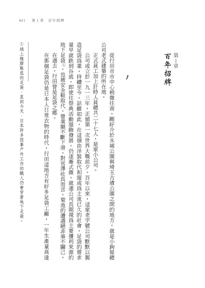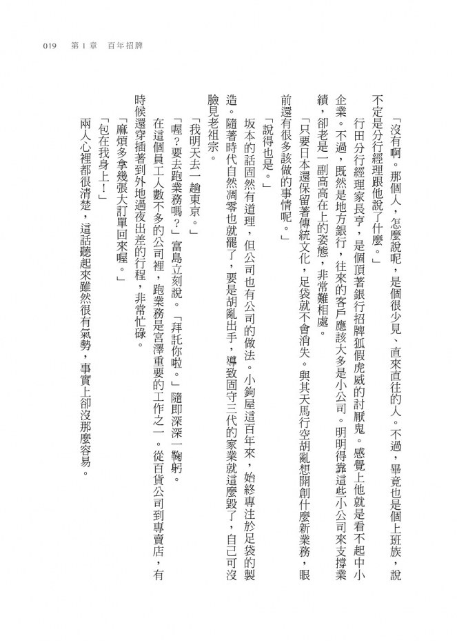 埼玉縣行田市的「小鉤屋」是家擁有百年歷史的足袋製造商。「歷史悠久」聽起來很了不起,但說穿了,小鉤屋不過是一家小型地方企業。在時代的沖刷下,業績持續低迷,隨時倒閉都不意外。