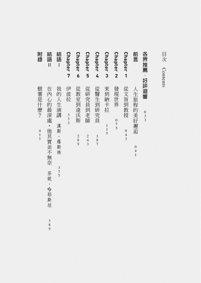 總而言之,這本書中沒有什麼數據,它探討我和人們相遇、交流的經過。這些邂逅總使我雙眼一亮,重新進行思考。