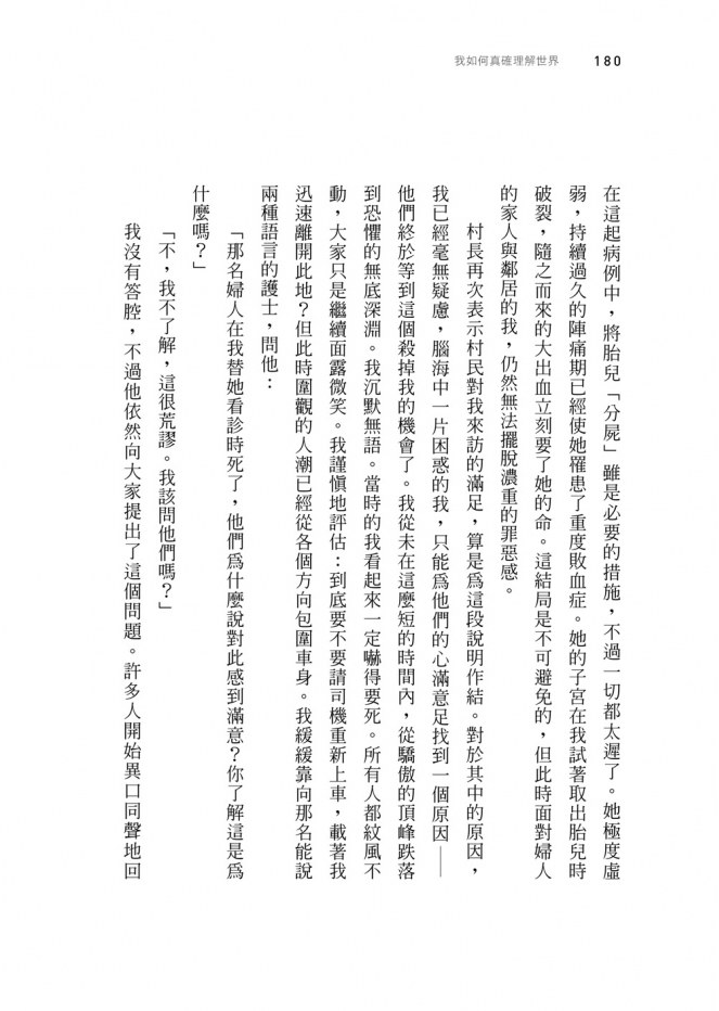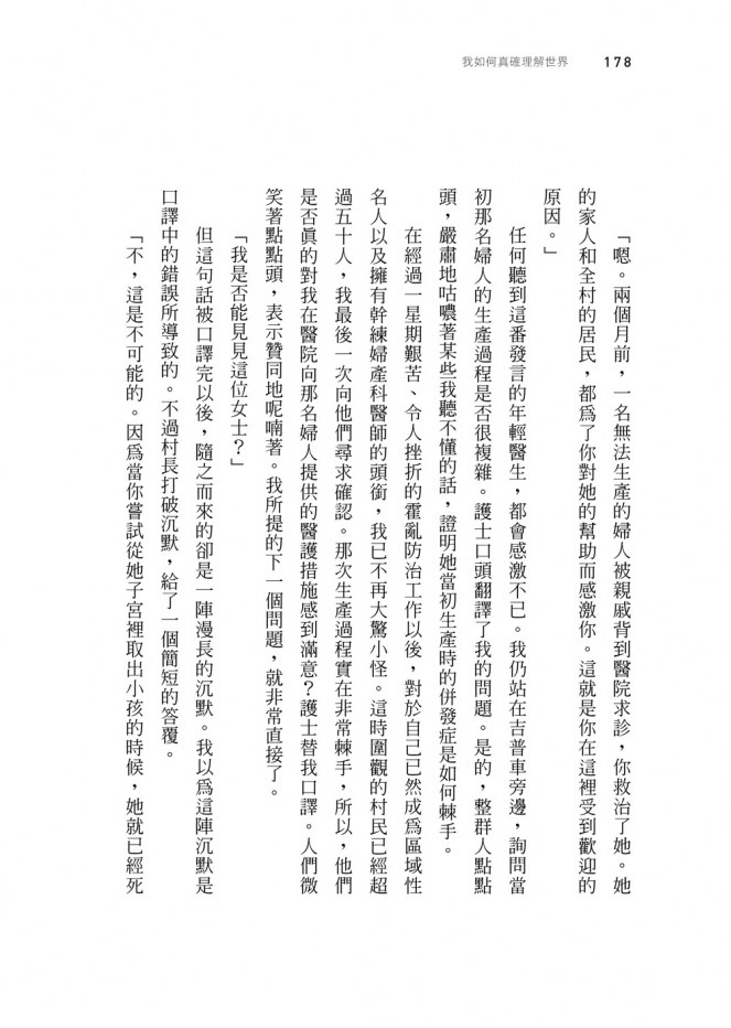 作者生命中所走過的早期社會發展、非洲行醫的經歷,以及統計研究的過程,完美地呈現出第一線人員在情感與數據中必須取得的平衡與掙扎。