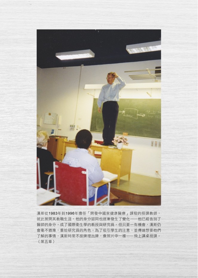 無論是在資源窘迫的非洲納卡拉急診室徹底反思醫者的價值,或是在世界經濟論壇以真確問題檢視全球領導人的無知,甚至是因為過於專注地實踐理想差點被太太掃地出門,漢斯.羅斯林持續將自己的生命奉獻給世界。