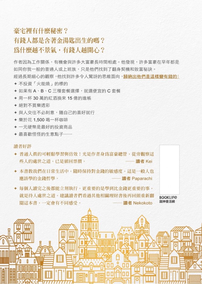 首度揭露有錢人的致富之道、用錢之道與處事之道。