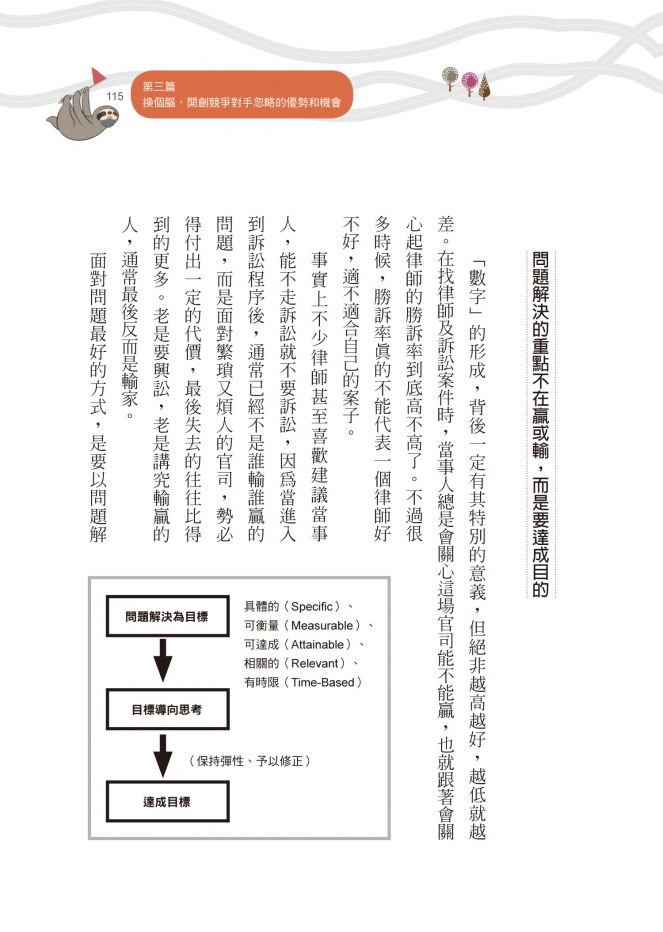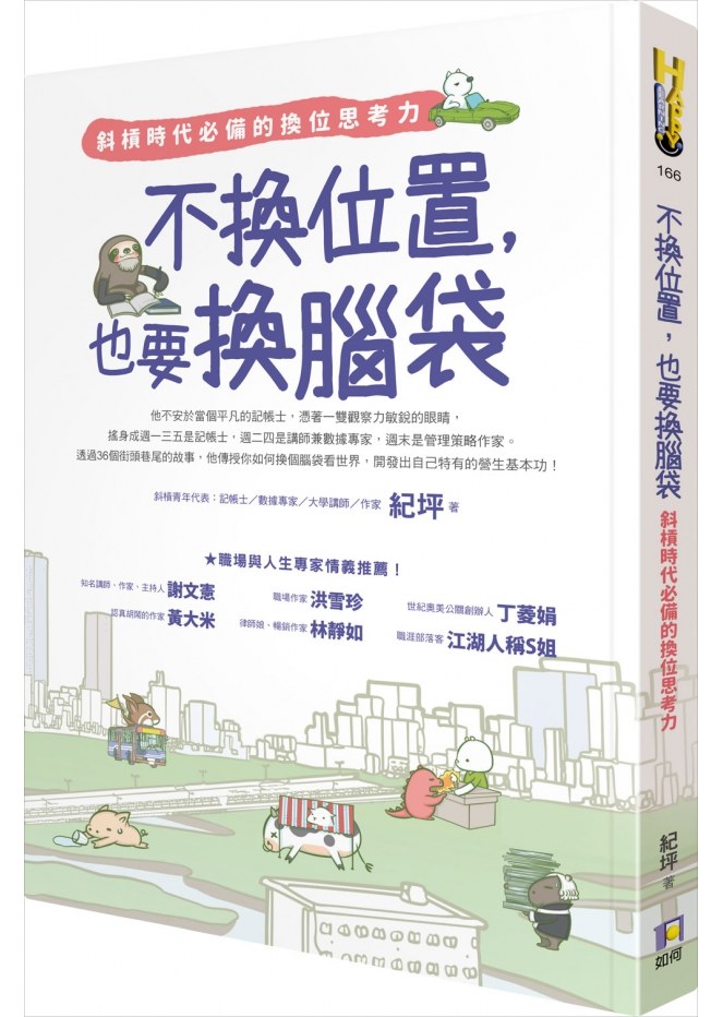 換位思考為我帶來了各種可能性,讓我可以同時身兼多職,不僅不覺得累,還越做越樂,白天是街遊各業別的記帳士兼大學講師,晚上是照顧一歲娃的父親兼數據專家和專欄作家,我把人生過得精采豐富。現在透過這本書,我整理了一些曾經滋養我成長的人物故事:說服技巧高明的小兒科醫生不只讓小病人乖乖服藥,也教會家長衛教知識;律師根據委託人的需要,刻意打輸官司,讓原告和被告都開心接受;牙醫師看蛀牙率就能分析出社區居民的教育水平及市場結構;茶行的老闆選擇不賣弄產區知識,而是用海拔數字來銷售高價好茶;禮品袋製造商明明知道會是門賠本生意,卻仍相信了客戶的光鮮派頭……藉由故事中的老闆、工頭、業務、理專、飲料店工讀生等人的眼睛和解決問題的作法,培養出多面向的思維,那你的腦袋就會像是有個哆啦A夢的百寶袋,遇到任何情況都能快速拋出最適當的相應之道。