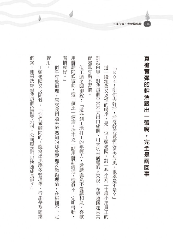 ★徬徨中的新進菜鳥、等不到升遷的萬年職員、固執己見沒朋友的主管、打算自力創業的未來老闆等,所必要的換位思考練習。