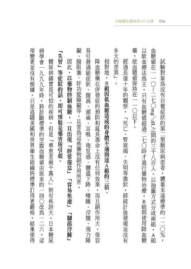 • 血糖控制藥不能治好糖尿病,卻會引發腳浮腫、失智、視網膜病變等藥害……